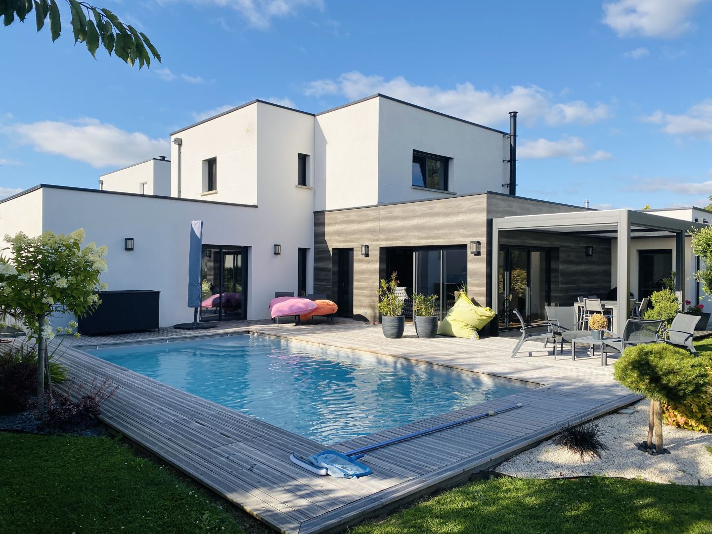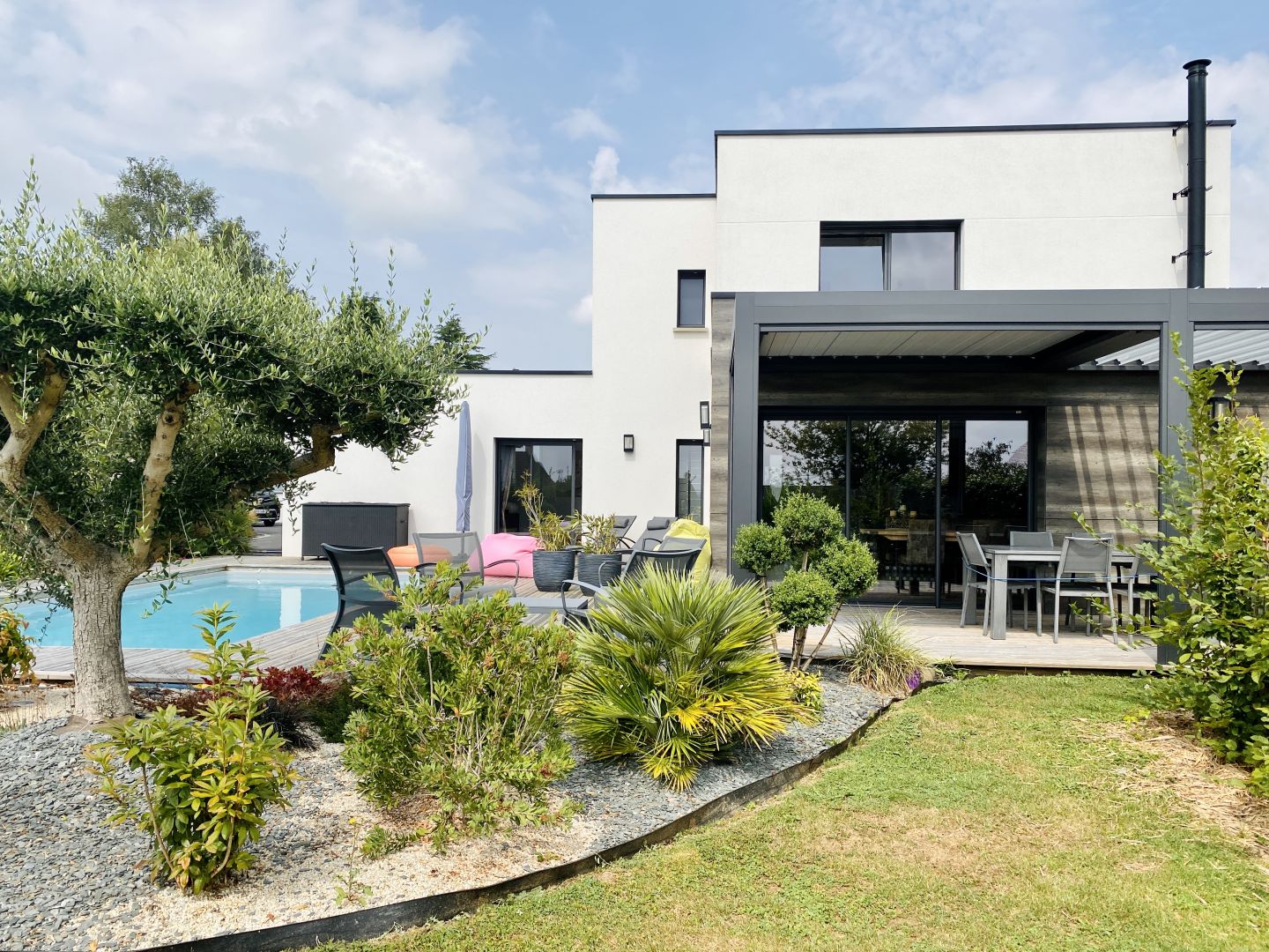 Notre coup de coeur de la rentrée pour cette maison contemporaine de 175m2 avec piscine à Agneaux. Achevée en 2018, cette maison style contemporaine développe 175m2 habitable. On retrouve les dernières innovations pour l'isolation et les énergies avec un diagnostic énergétique A/A. Géothermie pompe à chaleur, chauffée par un plancher chauffant au RDC et à l'étage. Vous disposez également d'un poêle à bois. Elle se compose ainsi : Au RDC, une entrée sur un grand séjour/salon de 50m2, une suite parentale avec dressing et salle d'eau. Une cuisine A/E avec arrière cuisine, ainsi qu'un garage de 50m2. À l'étage on retrouve deux chambres avec une salle de bain et douche, et une autre chambre avec sa salle d'eau. Côté extérieur, une pergola bioclimatique, une piscine chauffée sur un terrain de 744m2. La modernité alliant le confort et les économies d'énergies pour cette maison située à Agneaux avec tous les commerces, écoles et transports en commun à proximité En exclusivité dans votre agence Côté Particuliers.