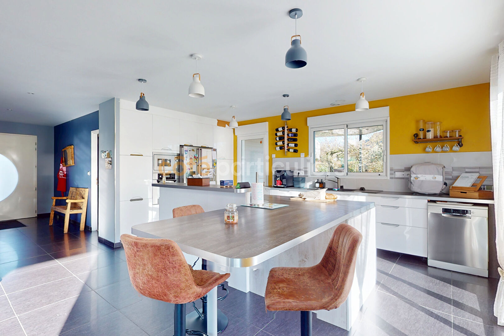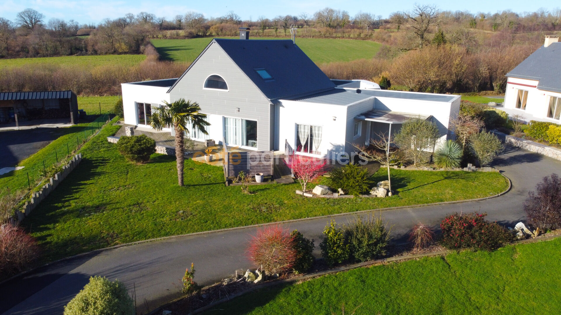 À seulement deux minutes des commerces de Marigny-le-Lozon, cette maison de plain-pied de 185 m² offre un superbe cadre de vie, conjuguant fonctionnalité, originalité et prestations haut de gamme. Dès l'entrée, vous découvrez un vaste séjour/salon avec cuisine ouverte d'environ 90 m², véritable pièce maîtresse de la maison, sublimée par un toit cathédrale. Cet espace lumineux invite à la convivialité et bénéficie d'une excellente luminosité grâce à ses grandes baies vitrées. L'espace nuit se compose d'une spacieuse suite parentale avec dressing et salle d'eau, de trois autres chambres équipées de placards, d'une seconde salle d'eau, ainsi que d'un WC indépendant. Une buanderie / lingerie vient compléter l'ensemble et apporte un confort appréciable au quotidien. Un double garage avec espace atelier offre des possibilités de rangement supplémentaires. À l'extérieur, la propriété dispose d'un jardin paysagé, d'une allée et d'une cour bitumée facilitant les accès et le stationnement. L'ensemble forme un cadre harmonieux et agréable à vivre, à proximité immédiate des commodités. La maison bénéficie par ailleurs d'un excellent classement énergétique (DPE A), gage de confort thermique et de maîtrise des consommations.