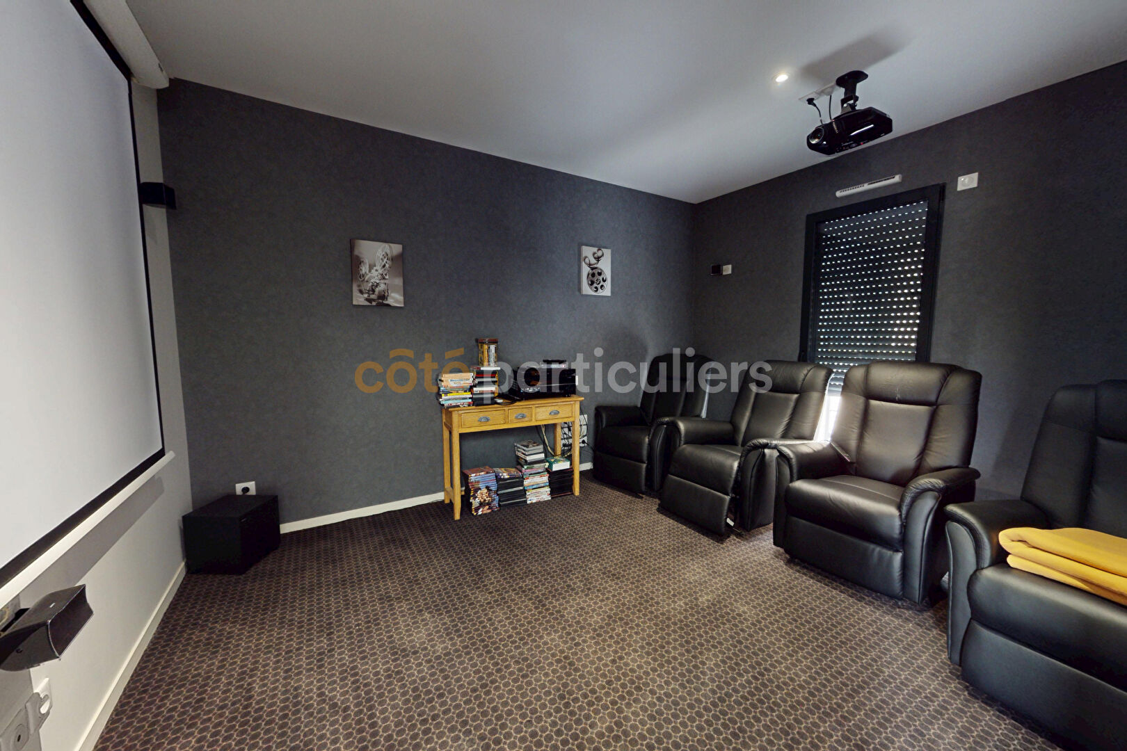 Située en centre-ville de Saint-Lô, à deux pas des commerces et des écoles, cette maison d'architecte, unique sur le secteur, saura vous séduire par ses volumes généreux, sa luminosité et son agencement fonctionnel. Construite en 2012 et développant environ 225 m² habitables, elle se compose comme suit : une entrée, une cuisine aménagée et équipée, une arrière-cuisine également aménagée, un vaste séjour/salon bénéficiant de baies vitrées d'angle offrant une luminosité exceptionnelle, une buanderie/lingerie ainsi qu'une grande suite parentale avec dressing et salle de bains privative (douche et baignoire). En empruntant l'escalier sur mesure, création unique, vous découvrirez un grand espace mezzanine donnant accès à une première terrasse. L'étage propose également trois suites, chacune disposant de sa salle d'eau privative, dont une avec terrasse privée, ainsi que deux autres chambres supplémentaires pouvant être aménagées selon vos besoins (actuellement une salle de cinéma et une salle de sport). Un bureau vient compléter ce niveau. La maison offre également l'accès à un grand garage avec porte motorisée, un véritable atout pour une vie en centre-ville. Côté extérieur, vous profiterez de plusieurs terrasses à différents niveaux, idéales pour prendre l'air et profiter du soleil, ainsi que d'un jardin parfaitement paysagé. Si vous êtes à la recherche d'une maison d'exception, celle-ci mérite toute votre attention.